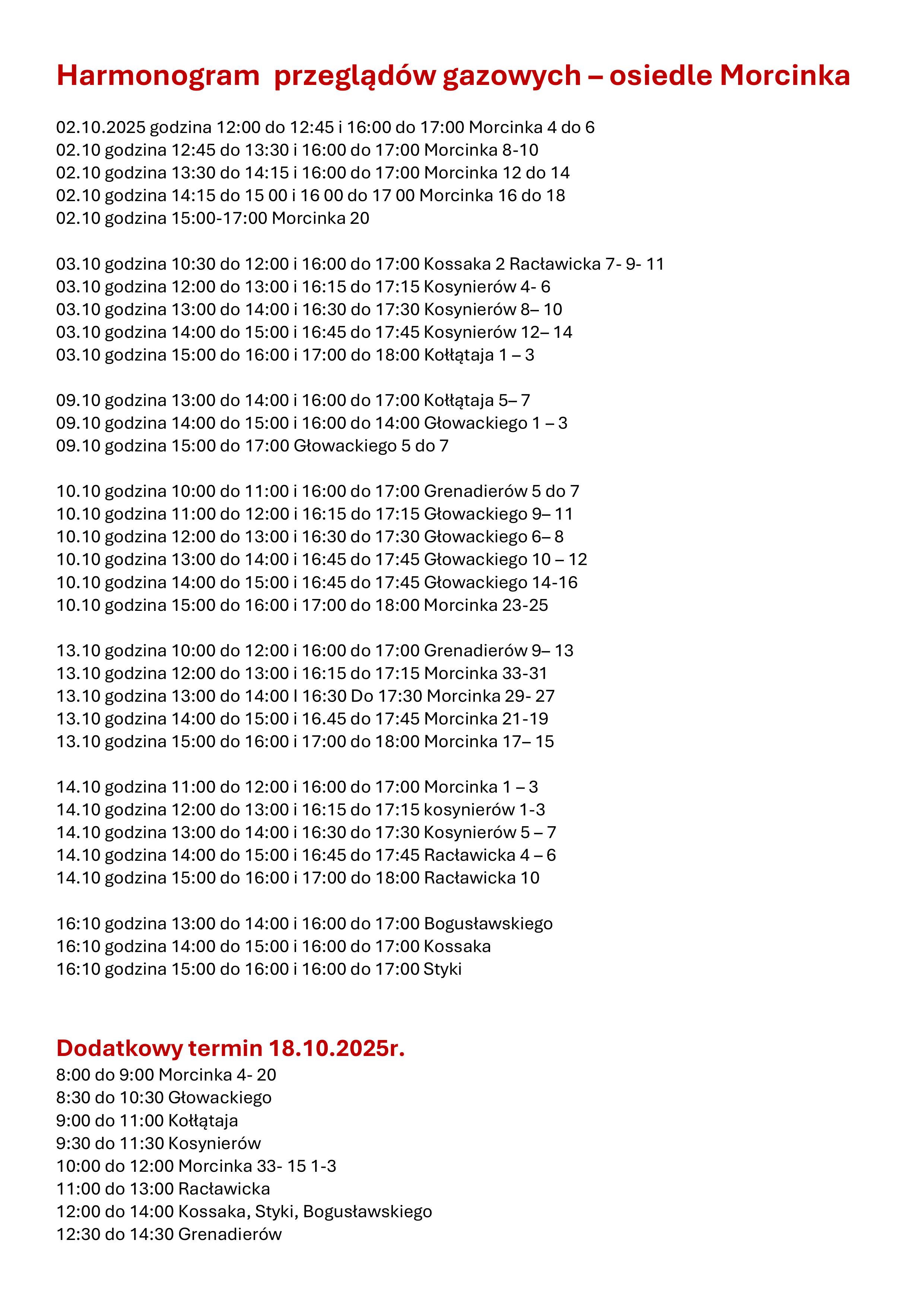 Roczne przeglądy instalacji gazowych - osiedle Morcinka