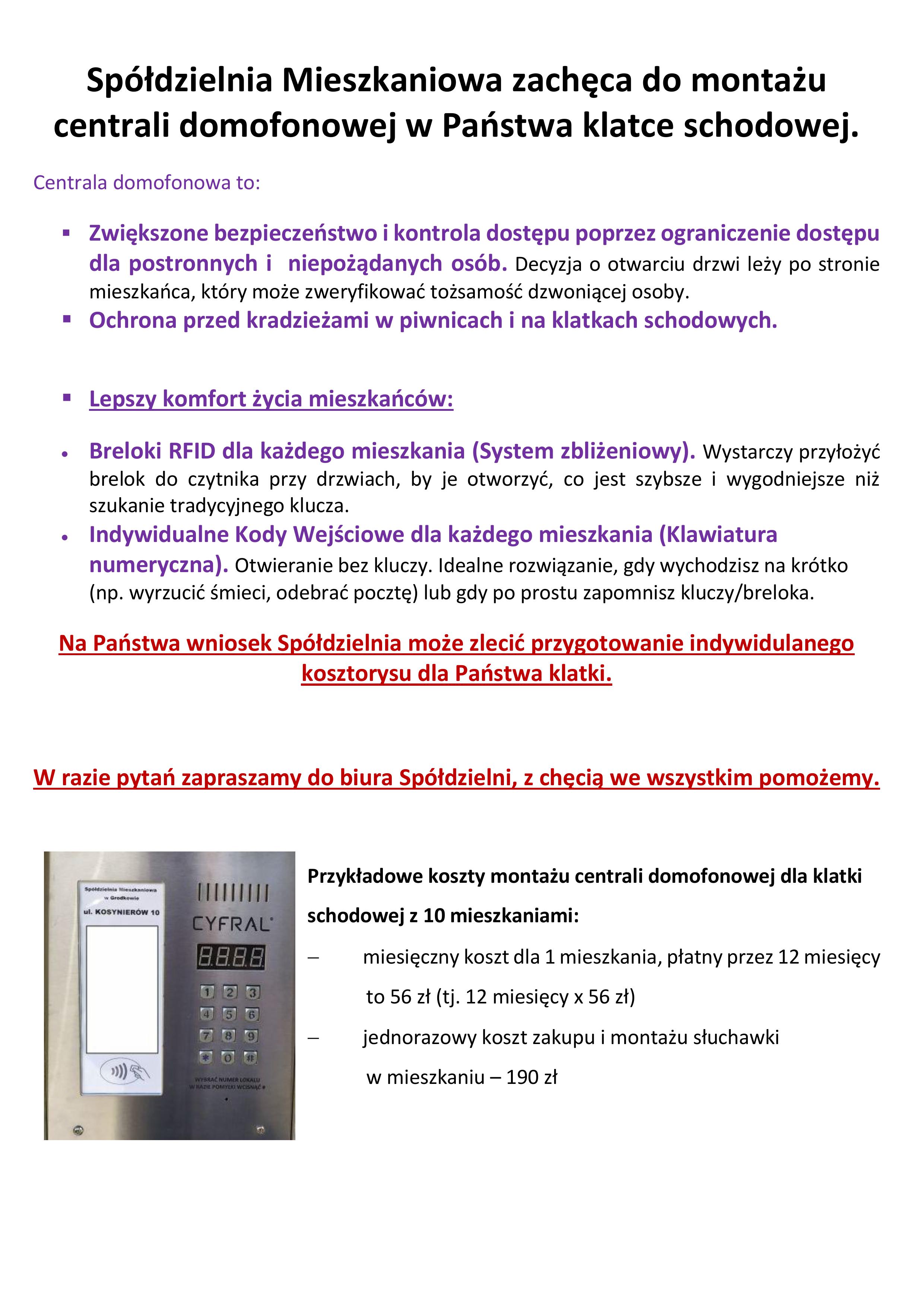 › Zachęcamy i pomożemy w montażu centrali domofonowych